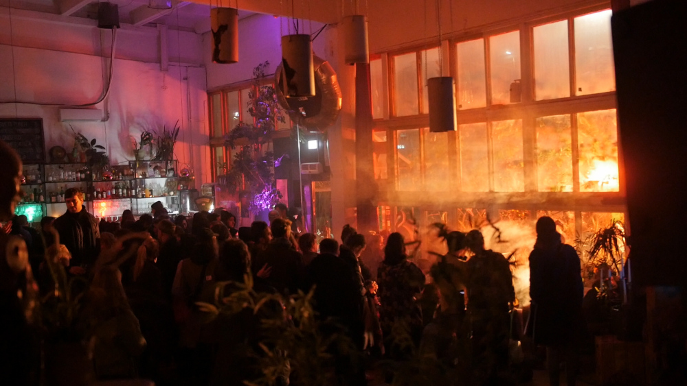 Object 8:13 interrupts an evening party by importing artificial sunrise in to the situation for 12 minutes.