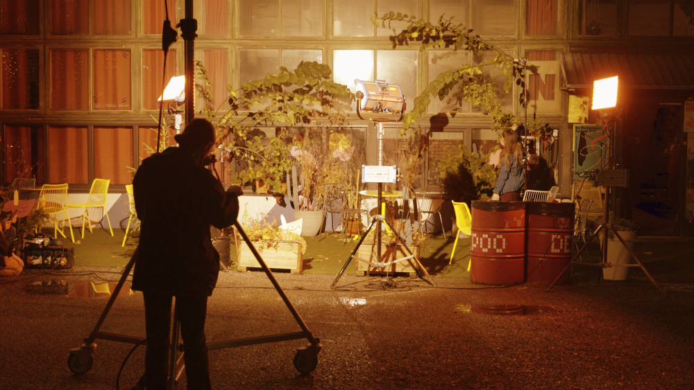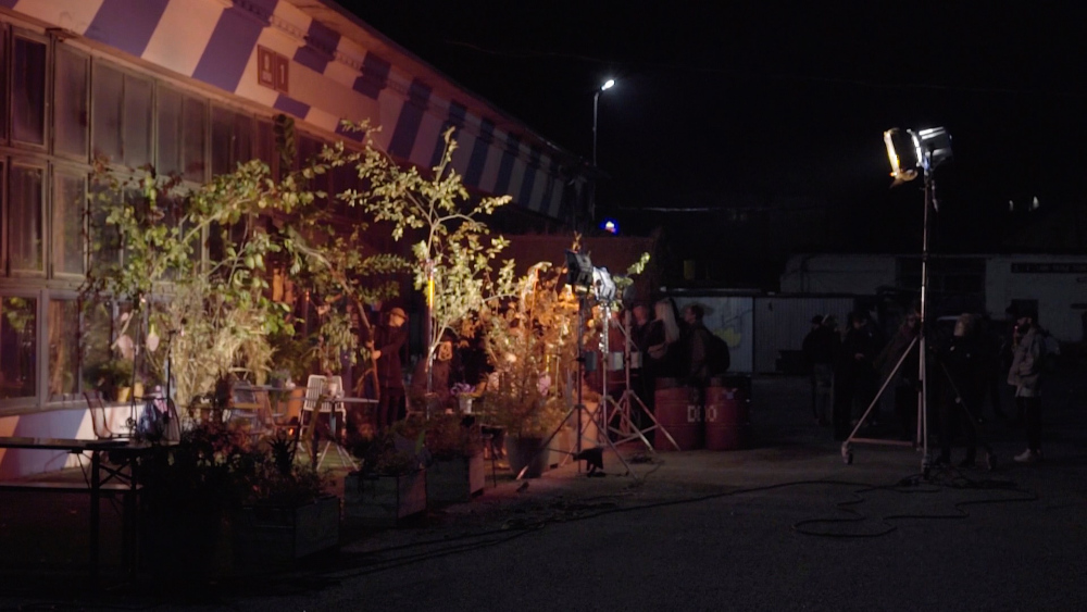 The installation can be observed both in and outside the room, people can move and see how the sunrise is created by electricians behind the windows with the help of cinematic lights.